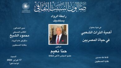 غداً ..”حنا نعيم ” ضيف صالون السبت الثقافي بنقابة الصحفيين وحوار حول أهمية التراث الشعبى في حياة المصريين