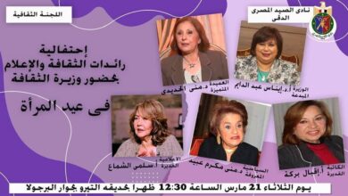 تنظم اللجنة الثقافية بنادي الصيد بالدقي احتفالية كبري لتكريم عدد من رائدات الثقافة والإعلام بمصر بحضور مقرر اللجنة الثقافية…
