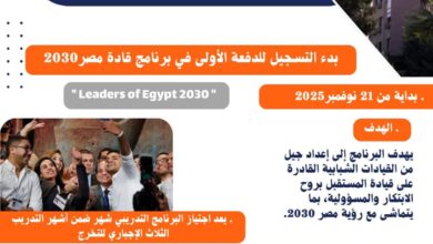 مركز إعداد قيادات شباب الجمهورية الجديدة يطلق الدفعة الأولى من برنامج “قادة مصر 2030”